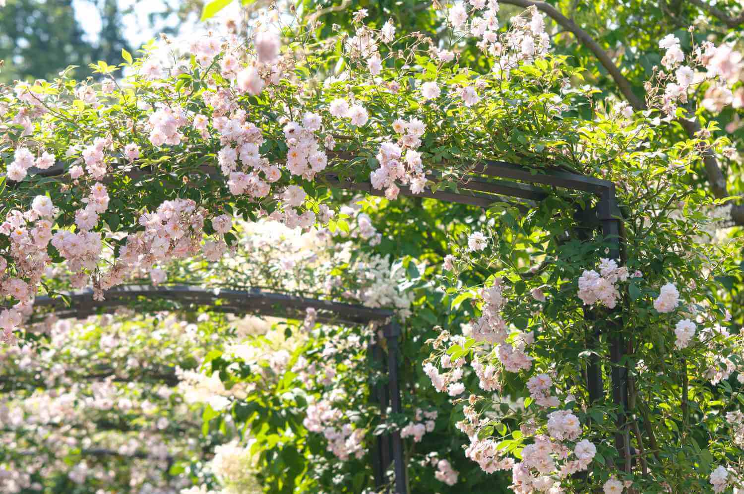 Training roses to climb themselves gives them sustainable growth and even creates a private natural canopy for yourself, right upon your pergola! However, once decided to grow and train your roses, you will need to tie them tightly to support their structure.