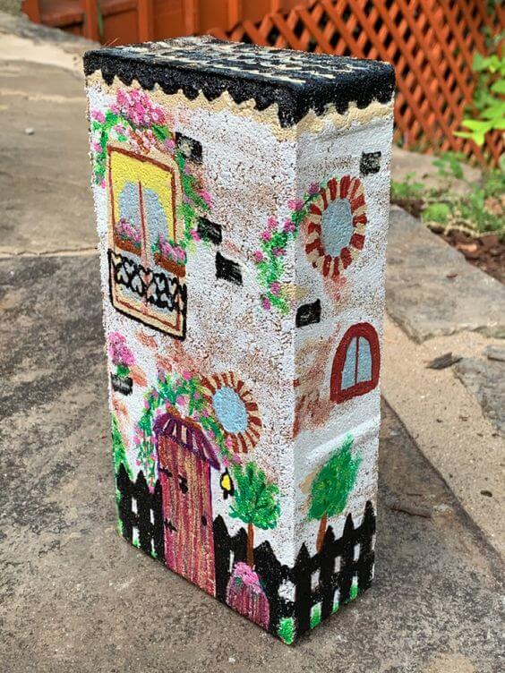 #1 Recycled Bricks From an Old Fireplace Turned Into Colorful Yard Art